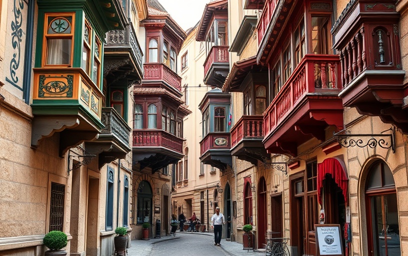 トビリシ旧市街は、カラフルな木製バルコニーと装飾的な建築が特徴の歴史地区です。何世紀にもわたる歴史と文化が交差する魅力的な街並みです。